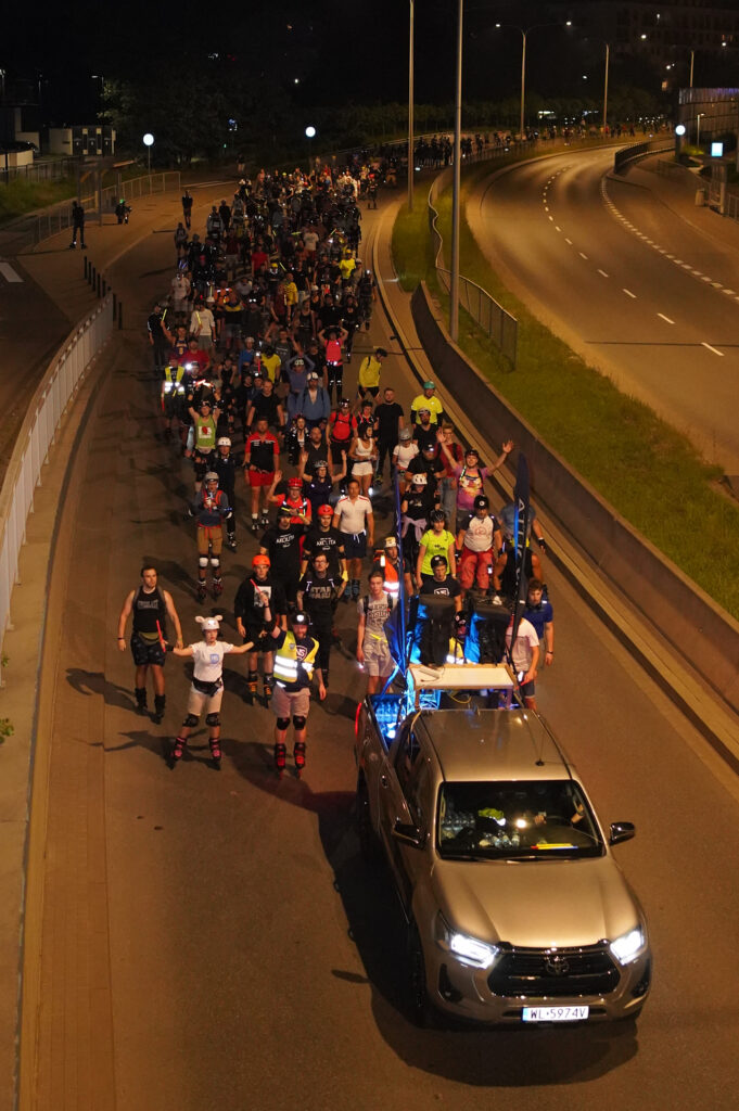 Przejazdy są zabezpieczane przez Policję oraz wyspecjalizowany zespół rolkarzy – Nightskating Warszawa Team, odpowiedzialny za płynność i bezpieczeństwo kolumny.